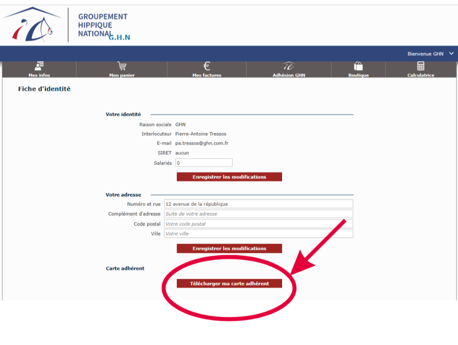 - Sous l’onglet mes infos cliquez sur « Téléchargez ma carte adhérent ».