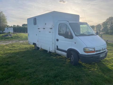 A Vendre, VL 2 chevaux Renaud Master diesel de 2000. Base Master FG L3H2 3t5 2,8 DTI 115 Chx. Nombreux rangements sellerie laterale rangements au dessus de la partie chevaux, espace repos avec lit électricité, douche et frigo. + de details accessible via le bon coin: https://www.leboncoin.fr/ad/utilitaires/3172630163.